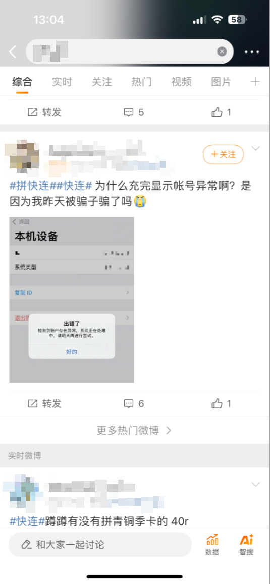 我是一名 VPN 轻度使用者(追星和看 YouTube),在浏览小红书和微博时,会特别留意关于 VPN 话题词的讨论。最近,大数据推送了一些“姐妹,半价合租快连 VPN”的帖子,我觉得特别幸运,因为不经常使用 VPN 所以觉得付费有点 “亏”,有姐妹拼单就很划算。一开始也担心是骗子,但对方称我为姐妹,还讨论了共同喜爱的明星,最后还发来了看似真实的证明材料(购买记录订单等细节)这让我彻底放下戒心,把钱转了过去。然而,转账后,对方立刻消失得无影无踪,带走了我的拼单费,我才意识到自己被骗了。